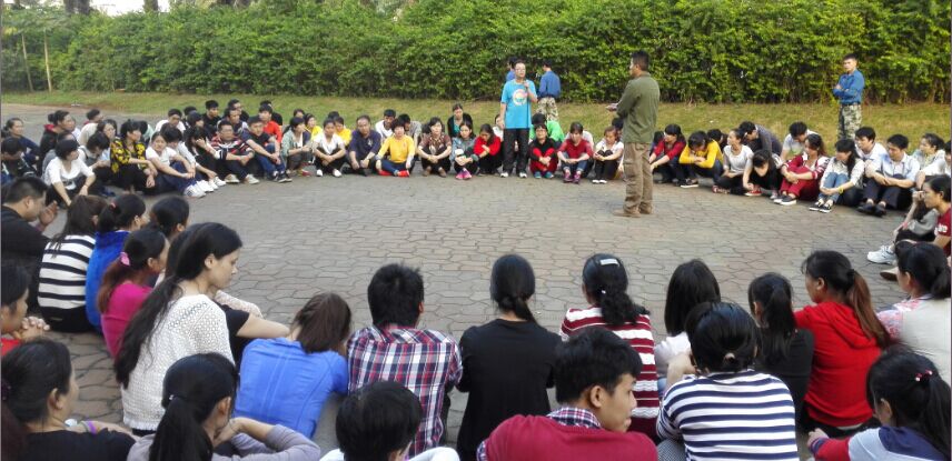 接下來(lái)的比賽項(xiàng)目是報(bào)數(shù),看似很簡(jiǎn)單的事情,但過(guò)程總是因?yàn)槟硞€(gè)人開小差、不用心等導(dǎo)致團(tuán)隊(duì)失敗,失敗團(tuán)隊(duì)的隊(duì)長(zhǎng)承擔(dān)100%責(zé)任,俯臥撐從5個(gè)到10個(gè)到20個(gè)到40個(gè)再到80個(gè),每一輪比賽輸?shù)膱F(tuán)隊(duì)隊(duì)長(zhǎng)承擔(dān)的俯臥撐是上一輪的雙倍。比賽氛圍開始還很比較輕松,兩輪后大家開始緊張了,到第五輪時(shí),受罰的隊(duì)長(zhǎng)苦苦支撐著、一次又一次爬起、趴下、再爬起時(shí),全體員工沉默了。隨后一名又一名員工趴下與隊(duì)長(zhǎng)一起受罰,一起承擔(dān),最后其它團(tuán)隊(duì)的所有成員自愿自發(fā)全部圍繞在受罰隊(duì)長(zhǎng)身邊一起受罰、承擔(dān),給受罰隊(duì)長(zhǎng)支持、加油!