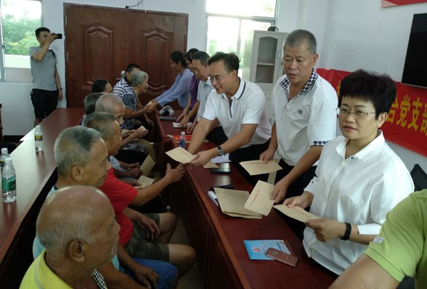 6月29日我司黨支部書記何春霞同志代表全星制藥與綜保區(qū)多家企業(yè)在綜保區(qū)黨組領(lǐng)導(dǎo)的帶領(lǐng)下,一同前往龍?zhí)伶?zhèn)龍?zhí)辽鐓^(qū)、三聯(lián)村、龍富村和龍新村看望慰問困難老黨員和貧困戶。