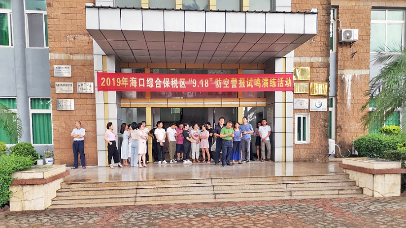 為增強駐區(qū)企業(yè)員工的國防觀念和防空意識,了解和識別防空警報信號,掌握防空襲疏散隱蔽知識,海口綜合保稅區(qū)聯(lián)合我司開展“九一八”防空警報試鳴演練活動。此次活動由綜保區(qū)統(tǒng)一指揮,我司負責具體實施,社事局局長黎晨主持,財政局局長王振武、園管局局長馬慶禮、原紀檢監(jiān)察室主任李軍、社事局副局長李建玲、經(jīng)發(fā)局副局長歐文、綜保倉儲物流公司、保安部、市中醫(yī)院等領(lǐng)導(dǎo)及相關(guān)部門負責人參加觀摩演練。
