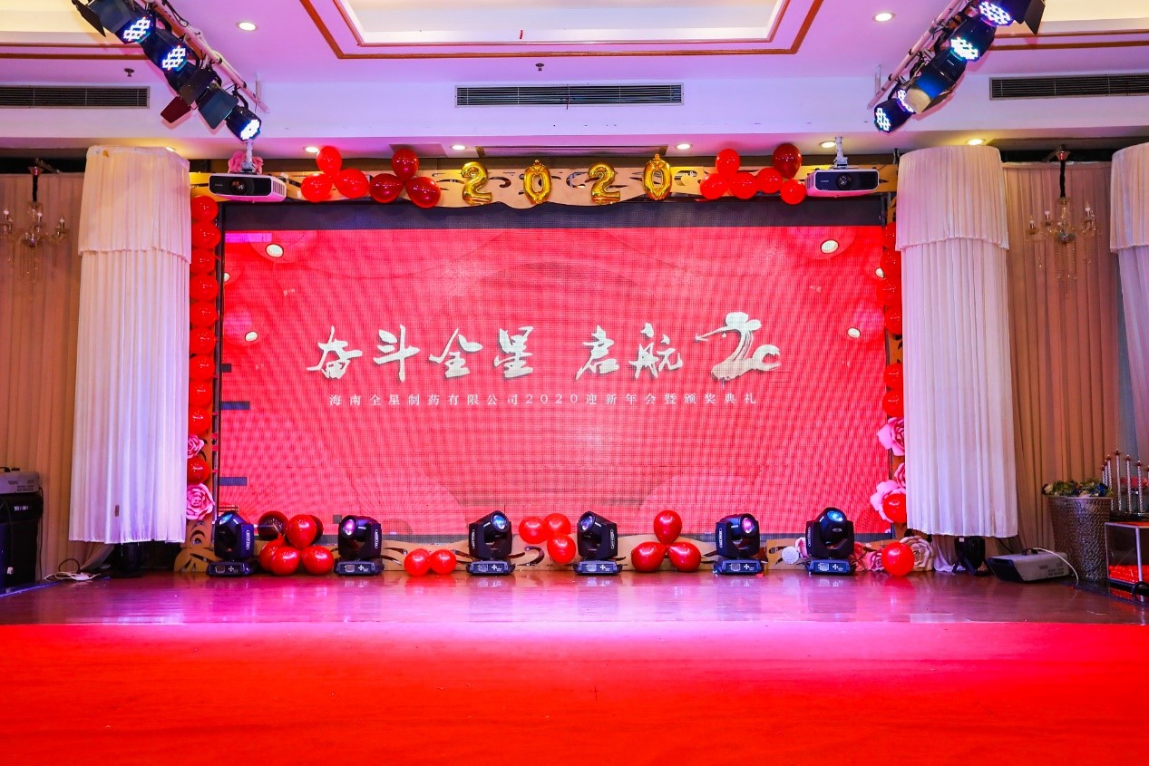 2019我們披荊斬棘,2019我們齊心協(xié)力,2019我們邁著堅定的步伐,伴著蓬勃的朝氣,譜寫燦爛篇章。歷添新歲月,春滿舊山河。海南全星制藥有限公司——“奮斗全星·啟航20”迎新年會暨頒獎盛典于2020年1月17日14:00在南海大道瓊菜王舉行,全星制藥全體員工及董事長家人們歡聚一堂,共迎新春。