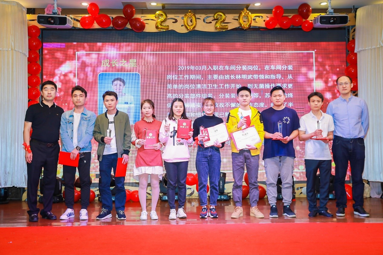 優(yōu)秀的員工值得被表彰和嘉獎,致辭結束,便是隆重的頒獎典禮。這次的表彰大會不僅設立了優(yōu)秀員工獎,更設立了成長之星獎、勤勞奉獻獎、崗位能手獎、金點子獎、伯樂獎及總經(jīng)理提名獎。公司感恩每一位有著突出貢獻的員工,感謝他們的付出與努力,他們每一個人都是同事們的榜樣。