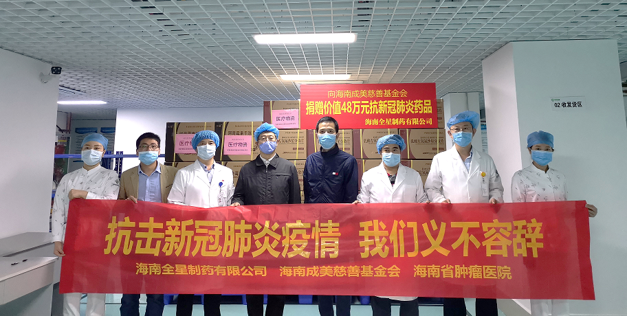 在全省上下疫情防控關(guān)鍵時期,海南全星制藥有限公司始終不忘履行社會責(zé)任,繼2月5日向海口市紅十字會捐贈107萬元的抗疫藥品后,全星再行動,2月7日,向海南成美慈善基金會捐贈價值48萬元的抗疫藥品,用于支持海南省腫瘤專科醫(yī)療聯(lián)合體下轄110多家醫(yī)療機(jī)構(gòu)開展一線疫情防控工作,助力我省早日打贏疫情防控攻堅(jiān)戰(zhàn)。